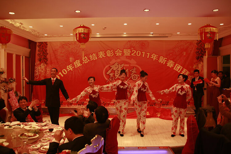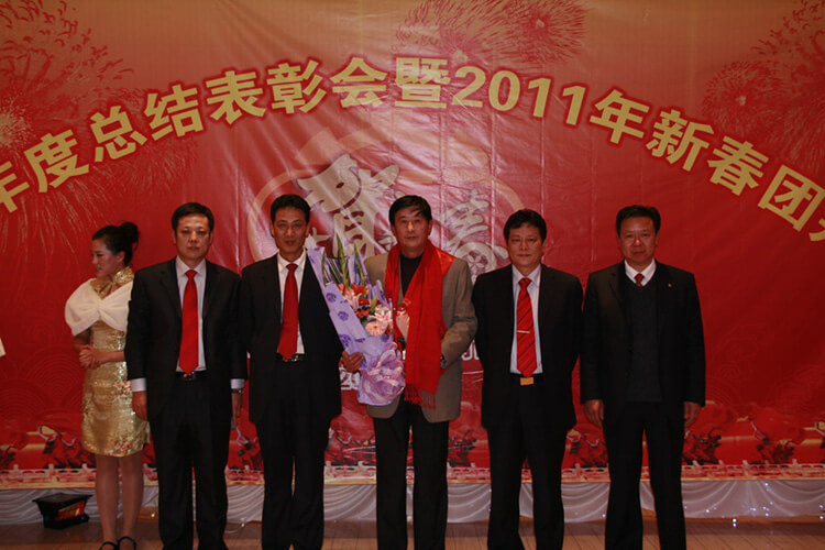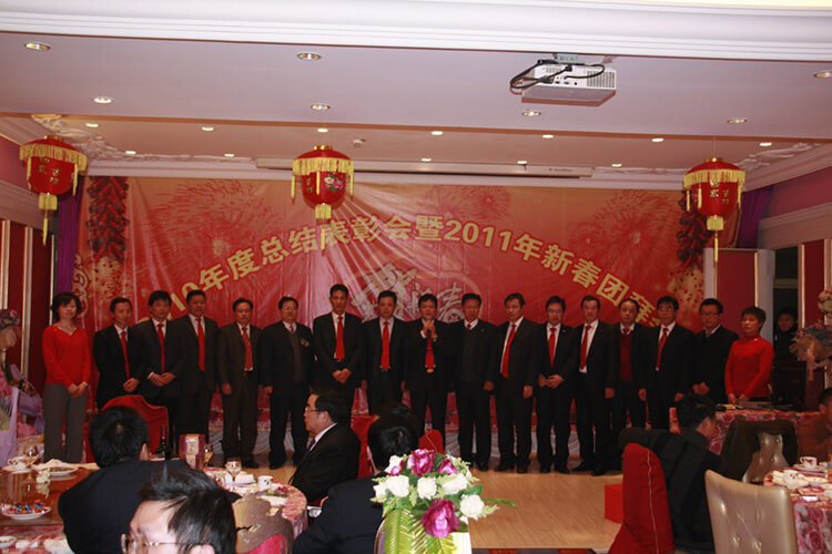 花放梅稍生意滿,春歸柳苑鳥聲和。在新春佳節來臨之際,公司2010年度總結表彰大會曁2011新春團拜會于2011年1月25日在福記飯店隆重舉行。公司經理班子全體成員、全體員工參加。會上,公司董事長兼總經理姜漢軍作新年致辭,他總結了2010年工作,部署安排2011年工作目標,常務副總經理王眉林主持。會上表彰了47位優秀員工,5位公司標兵,3個優秀團隊,頒發了1個創業獎、1個管理團隊獎。公司經理班子成員向全體員工拜了早年,向仍奮戰在生產經營一線的員工表示誠摯的問候。