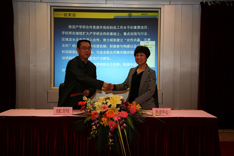 對接交流會上,綜合辦主任常健代表公司與西南交大機械工程學院簽訂了合作協議,并與我公司就技術需求、人才培養、科技成果轉移轉化等方面進行熱烈交流和討論。
