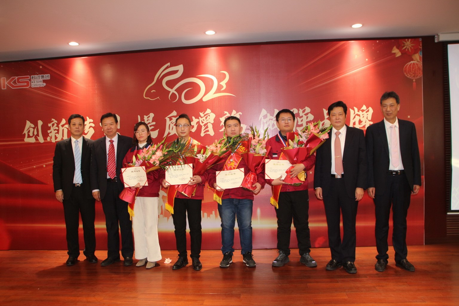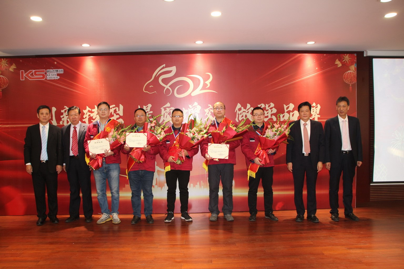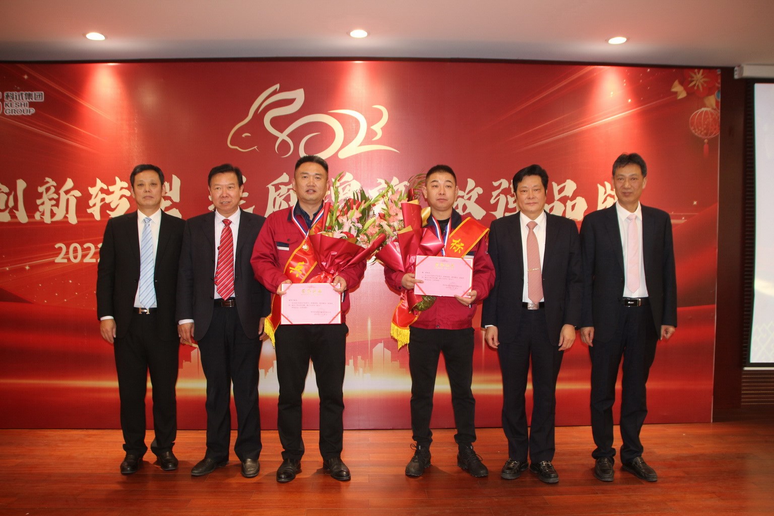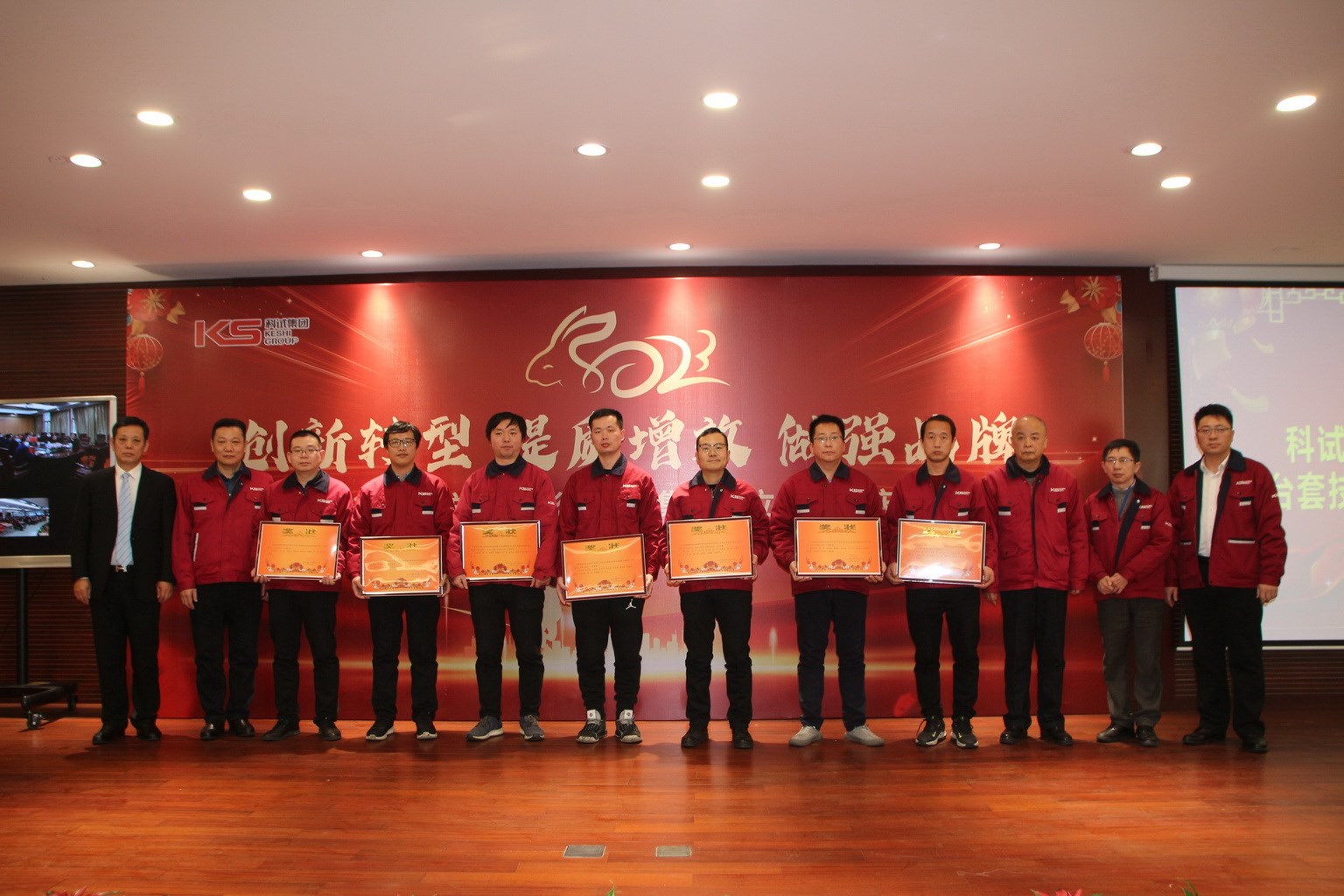 科試集團2022年度總結表彰大會暨集團成立十周年慶典于2023年1月16日下午在集團食堂隆重召開??圃囍行拇?、技服公司在常人員在現場參加了大會,內蒙基地及分宜驅動橋公司分會場通過視頻連線在線參加會議,大會由集團副總裁王眉林主持。