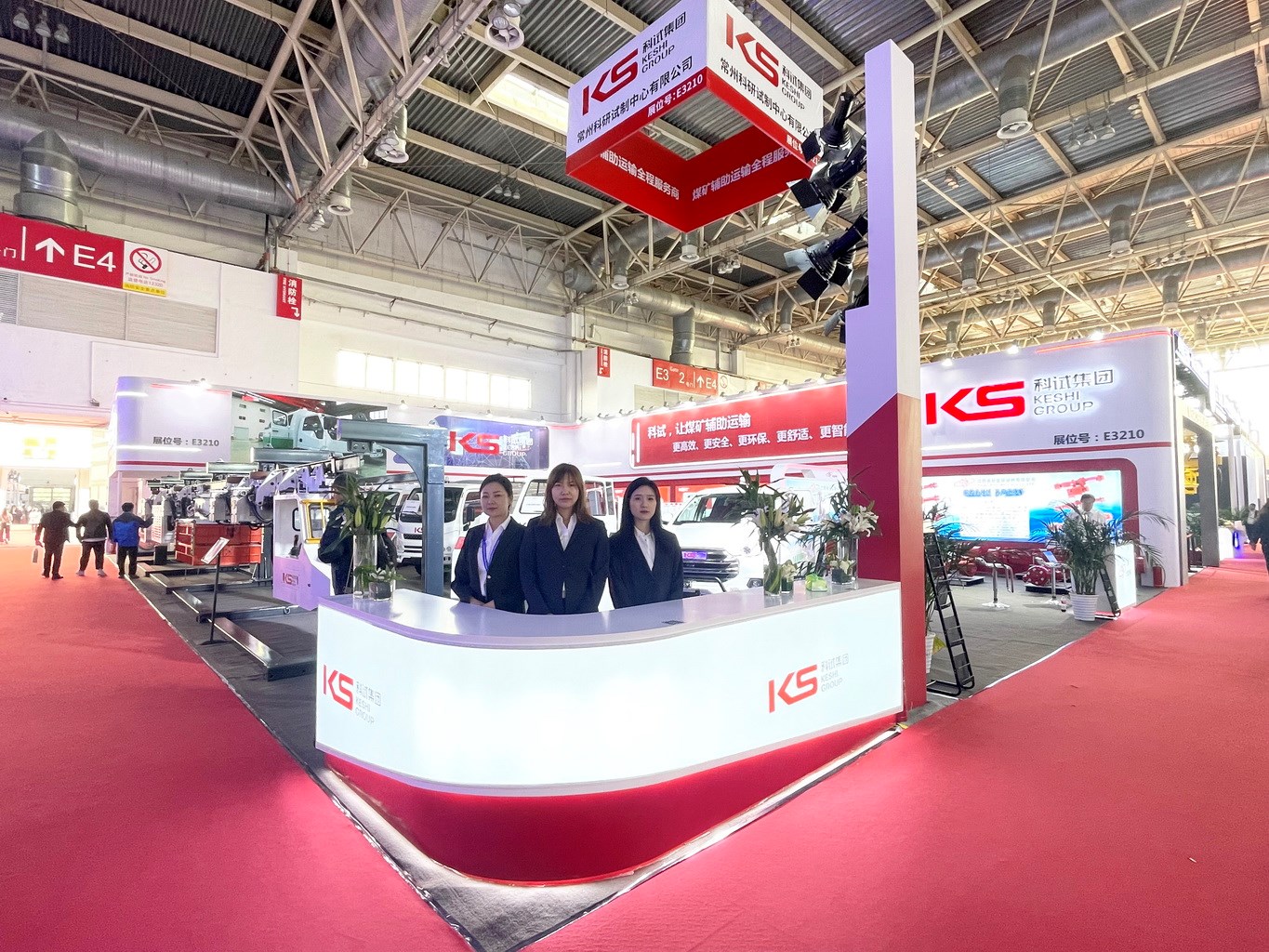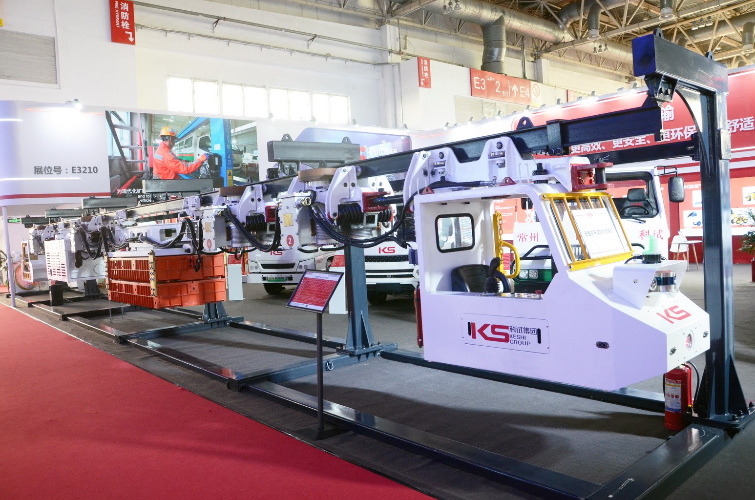 科試集團展區位于E3210,展位面積約375平米,防爆電動運人車、防爆柴油清掃車、防爆電動鉸接式料車、防爆電動指揮車、防爆鋰電池單軌吊機車及遠程駕駛艙、防爆鋰離子充電機等新產品現場展示,江西省分宜驅動橋有限公司系列濕式制動橋、轉向驅動橋同展區一起參展,集團公司參展的新技術、新產品吸引了眾多國內外客戶駐足參觀咨詢。